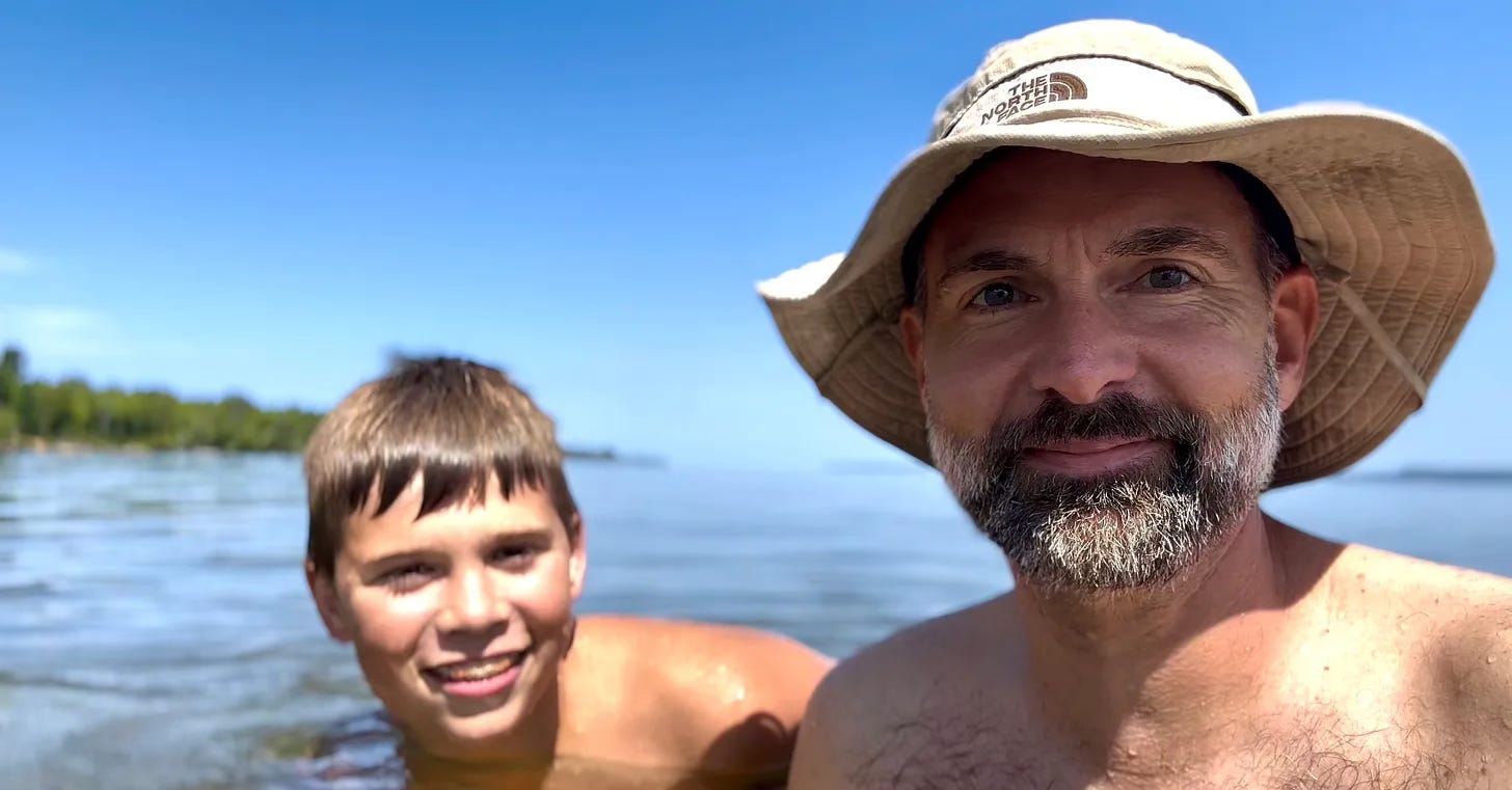My son, Will, who's 12 years old, and I decided on a whim to leave Columbus, Indiana, this past Monday morning for a spontaneous trip to the Upper Peninsula of Michigan. After a long seven-hour drive, we stopped in Mackinaw City before continuing our journey to Pictured Rocks National Lakeshore. At the public beach, we were in awe of the stunning four-mile suspension bridge connecting the landmasses. We spent time skipping rocks, and eventually, Will even bravely jumped into the frigid waters of Lake Huron for a swim.