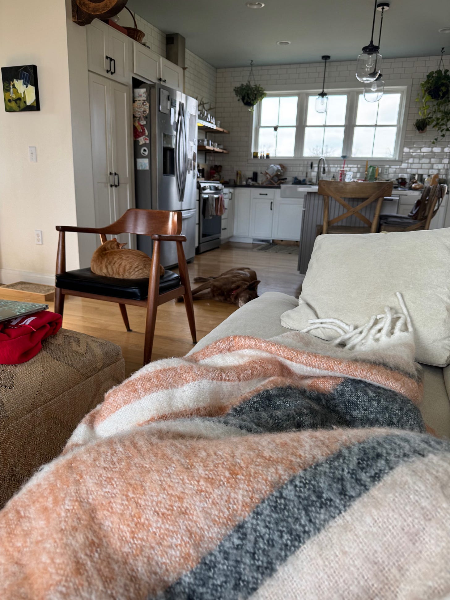 which I am underneath in this picture. Did you know that grief and dramatic life shifts require sleep? Probably easy to guess if not experienced. My dear friend, Sarah, gave me this blanket and I use it daily. It is heavy and fluffy at the same time, a most comforting combination.