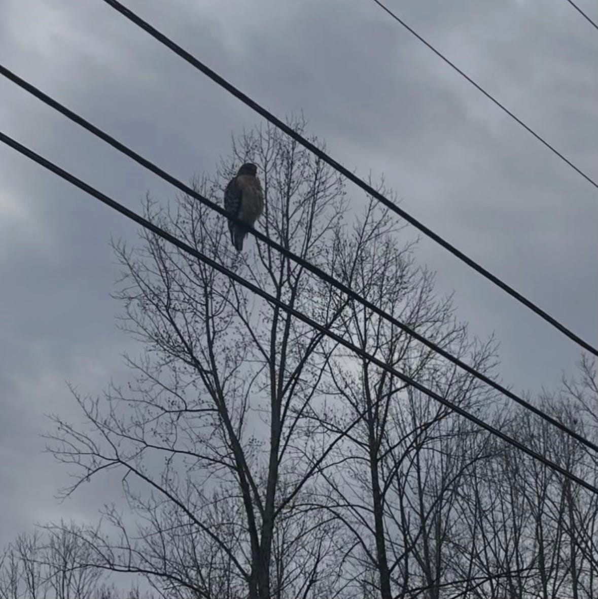 My foot stepped on the gravel at the end of the road and the beginning of our driveway and I looked up to the sky as I do most mornings returning home from my walk. On this day, the sun was hiding behind clouds, leaf buds still hibernating long before spring. As my eyes wandered across the horizon, I noticed a hawk sitting on the wire that spans across our field. She seemed to look down at me. The beauty of her tail hanging far below her perch, I was struck by her stoic presence, her confidence, the magnificence of her simplicity. She sat there, unmoving, fully embodying the energy of all that she is - strong, confident, regal.